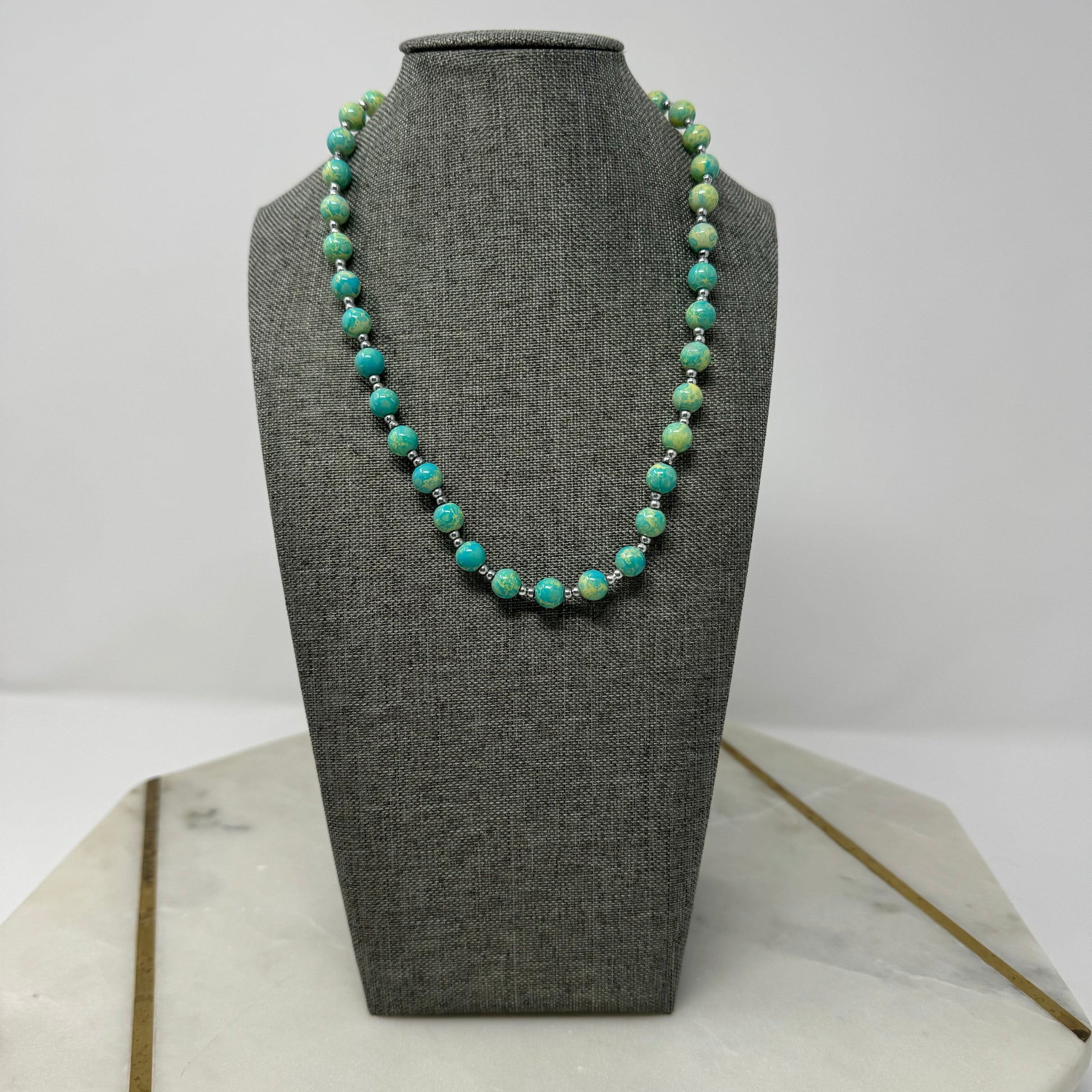 Shake up your jewelry game with this vibrant blue and yellow beaded necklace. Perfect for adding a pop of color to any outfit, this necklace will make you stand out in the best way possible.