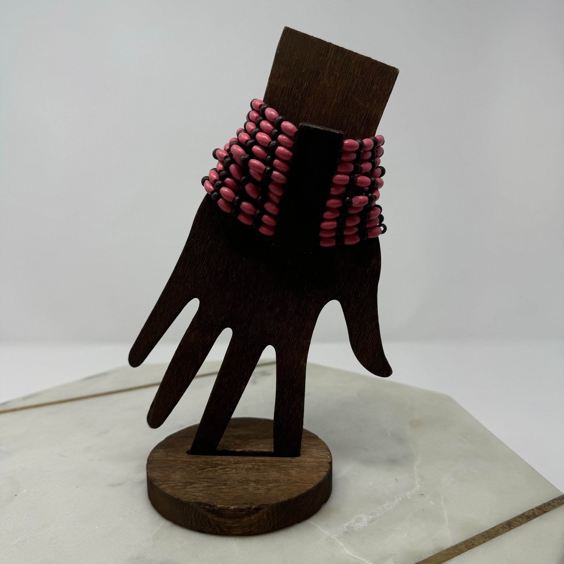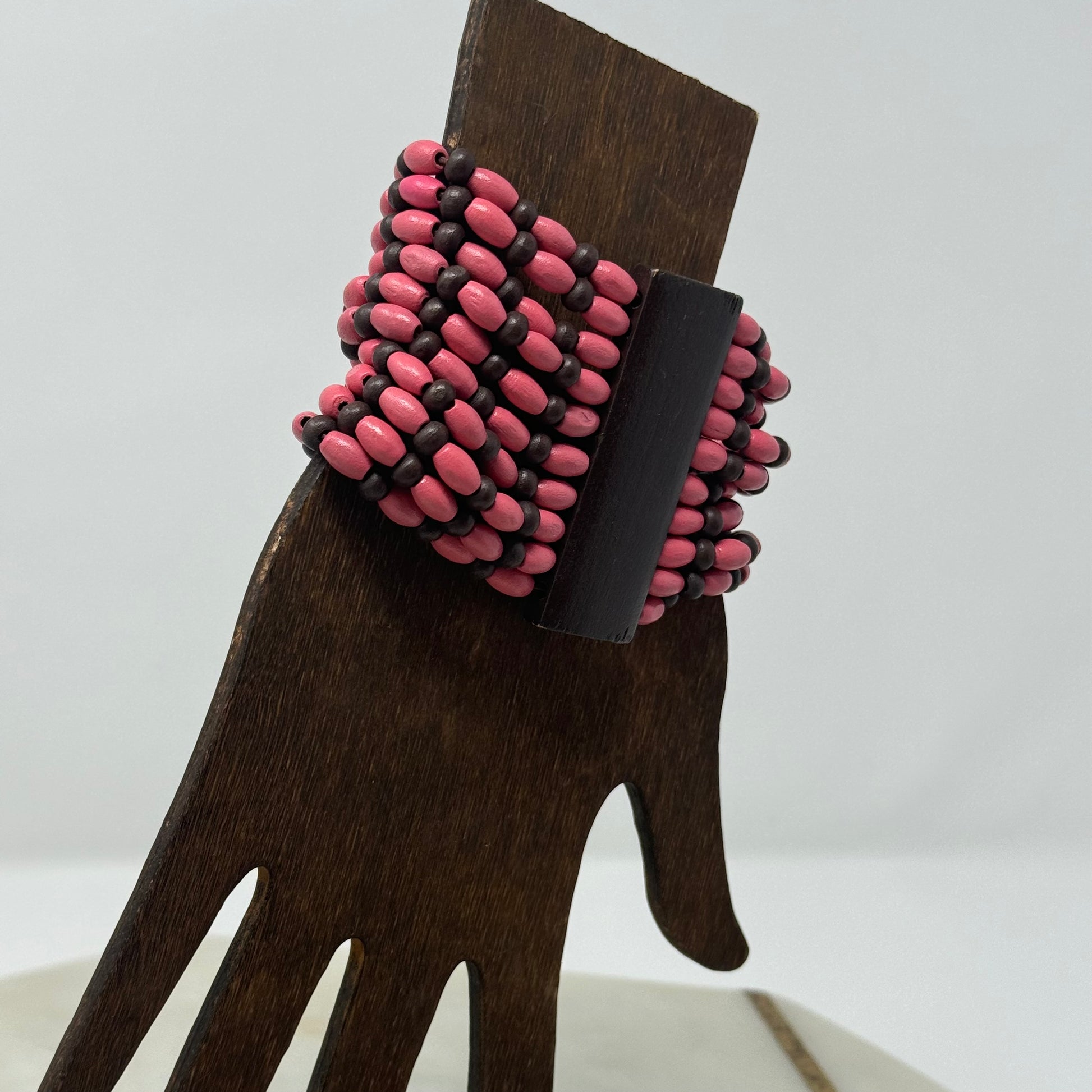 Bracelet Boho Multi-Layer Pink Tall Cuff Bangle Wood Beads 7.75 in Costume Jewelry