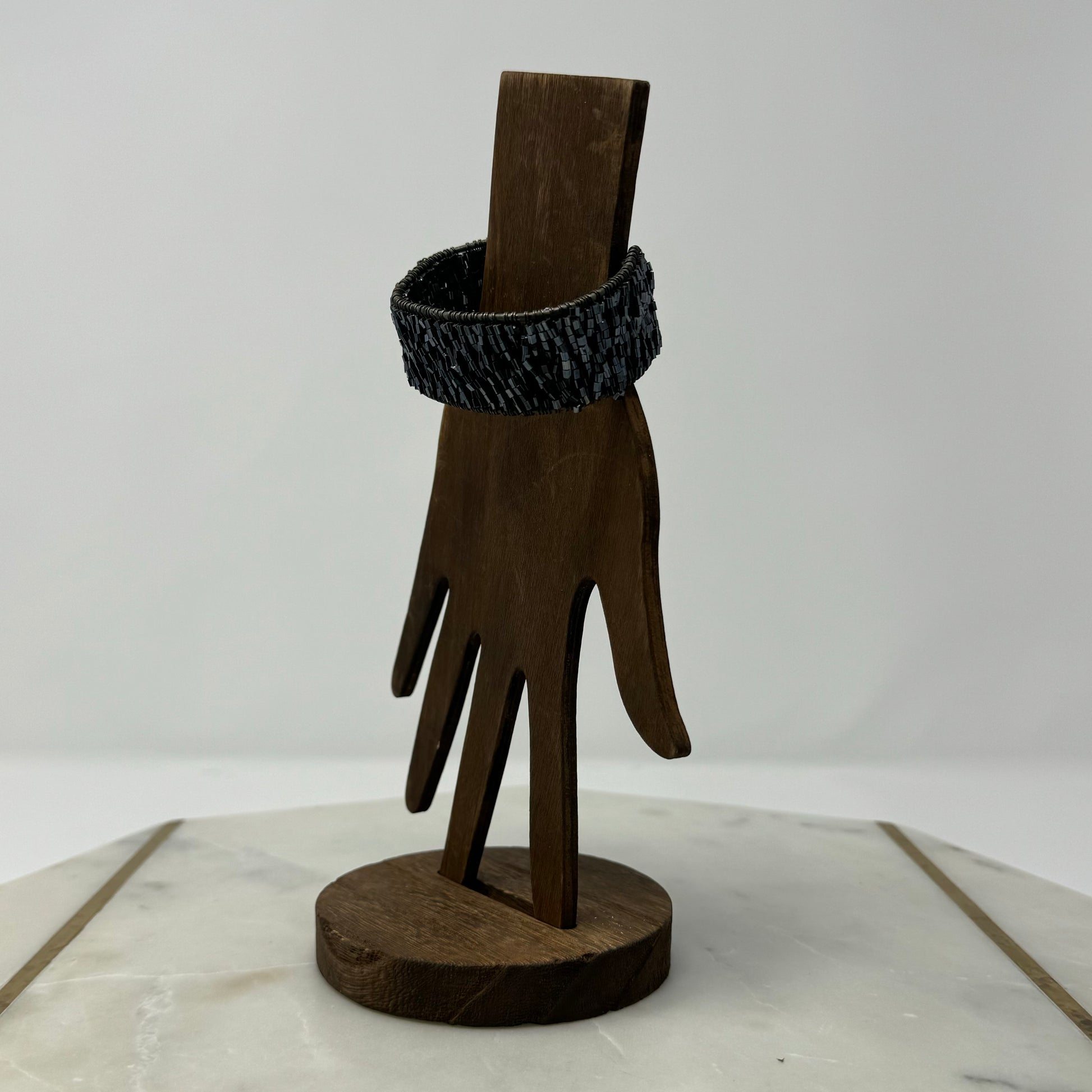 This dark blue beaded cuff bracelet is a stylish and versatile accessory to add to your collection. Made with stunning dark blue beads, this bracelet is perfect for any outfit. The unique design will make a statement and elevate your style.