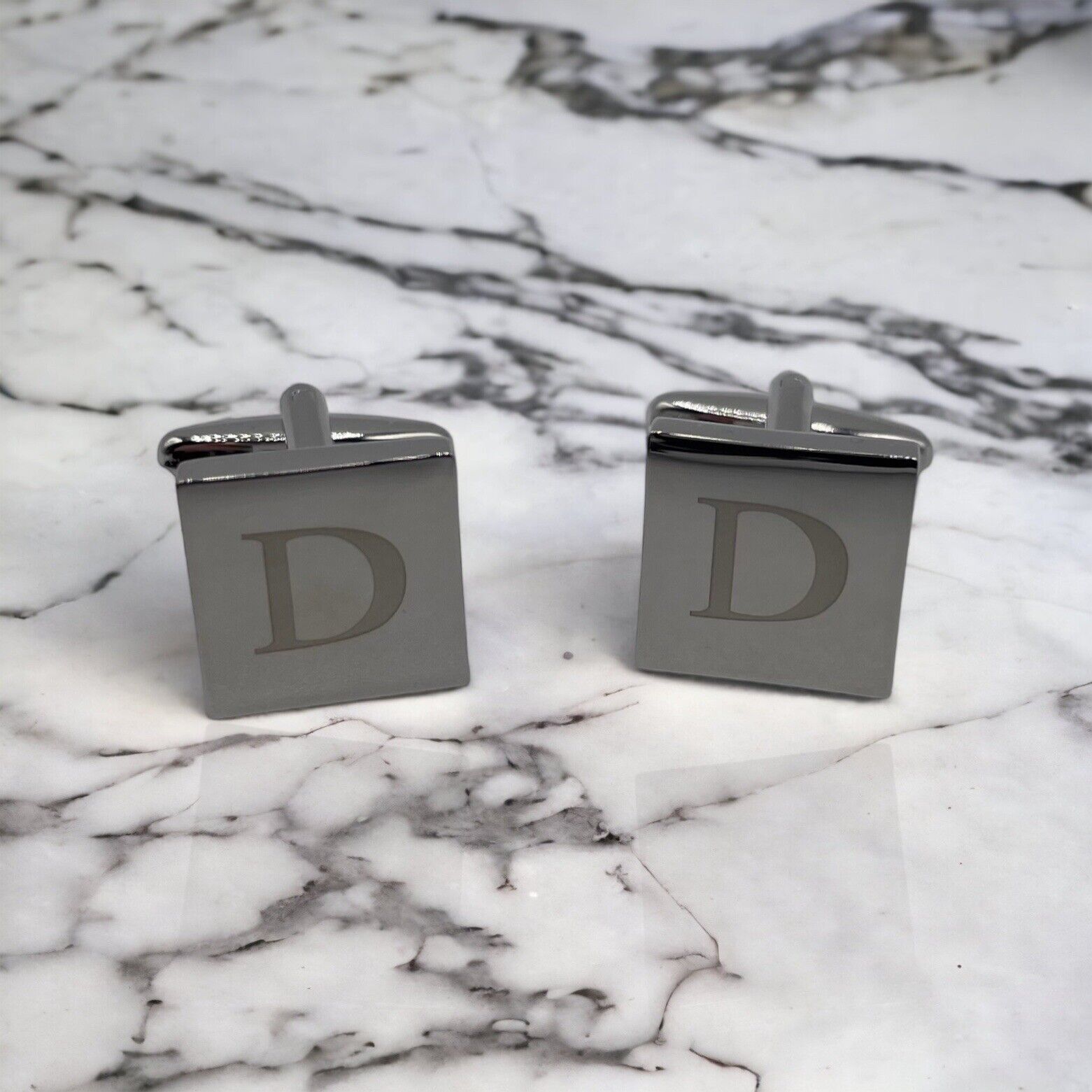 Make a statement with these stylish cufflinks featuring an initial letter "D" monogram. The sleek design showcases a square shape with chrome features, perfect for special occasions such as weddings, graduations, and Father's Day. Crafted from high-quality stainless steel, these cufflinks by Dual Monocle are both durable and fashionable.