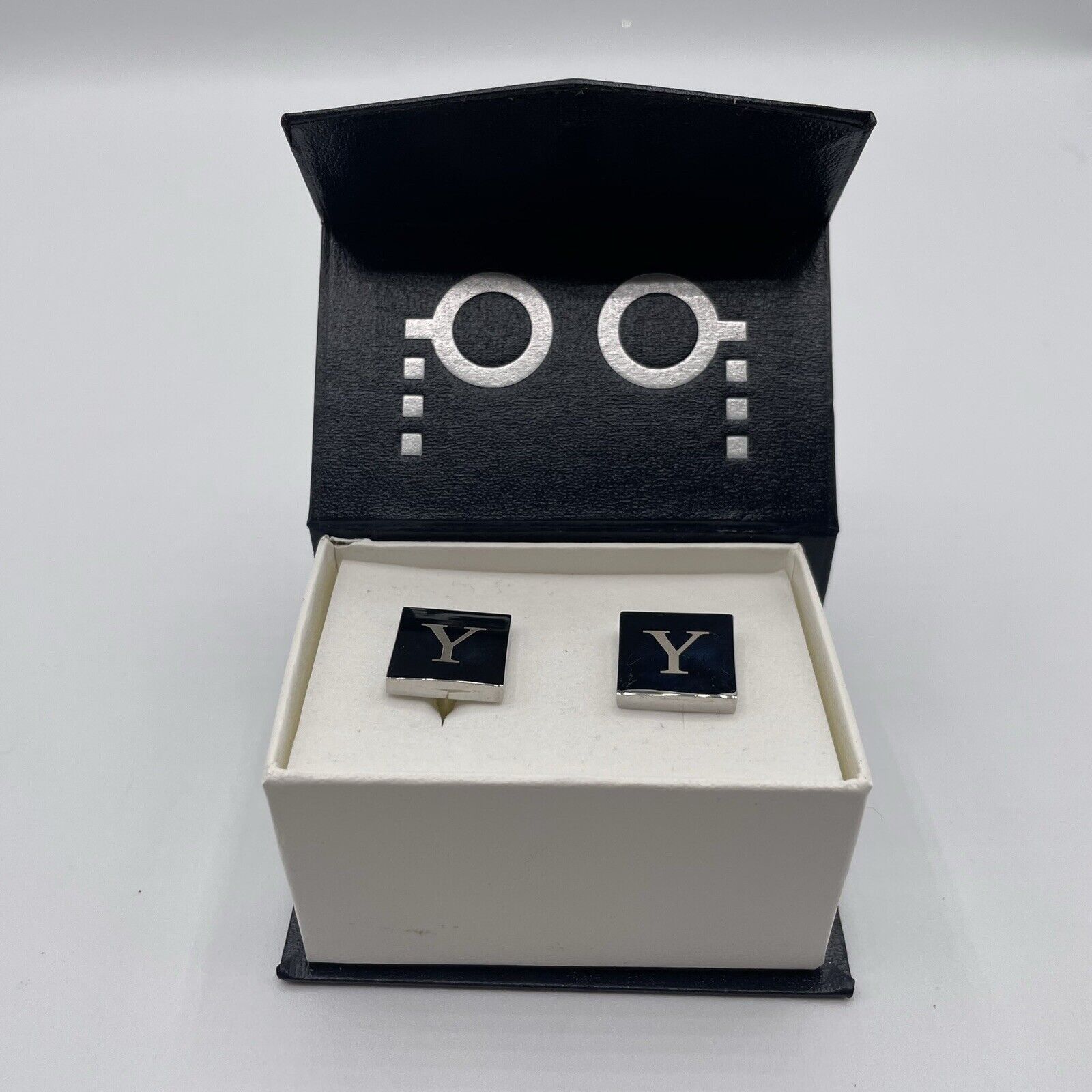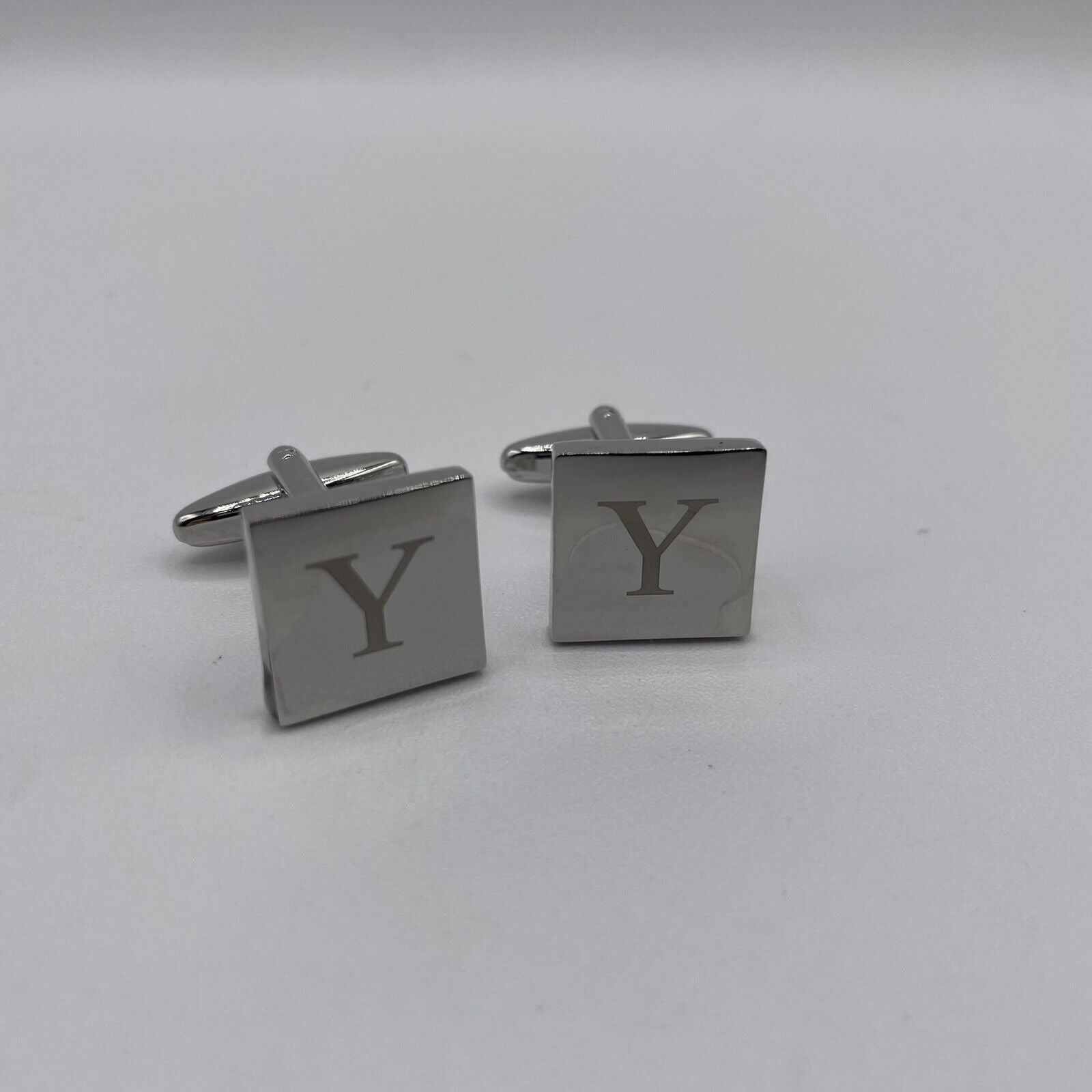 Make a statement with these stylish cufflinks featuring an initial letter "Y" monogram. The sleek design showcases a square shape with chrome features, perfect for special occasions such as weddings, graduations, and Father's Day. Crafted from high-quality stainless steel, these cufflinks by Dual Monocle are both durable and fashionable.