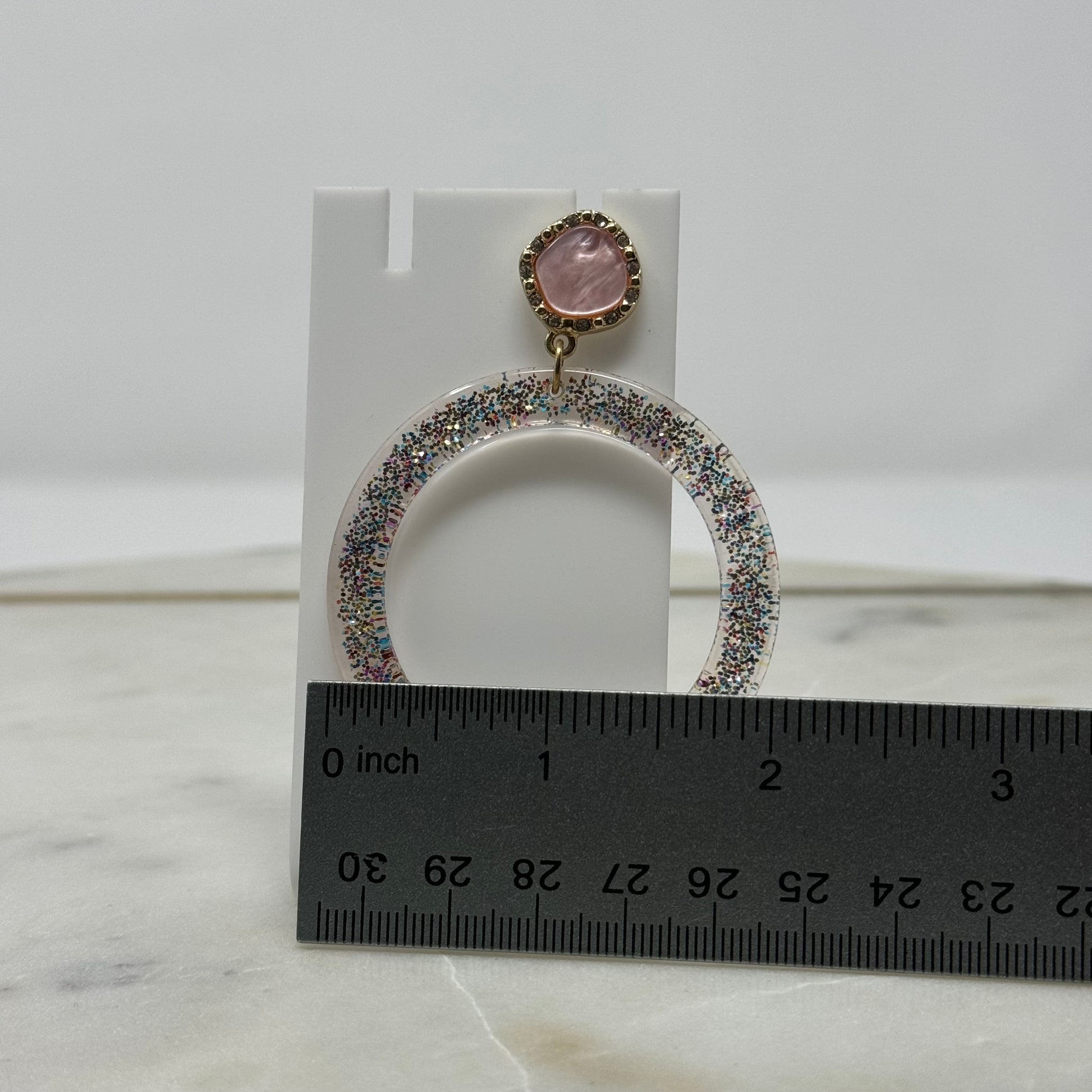 Pink & Gold Glitter Dangle Hoop Earrings