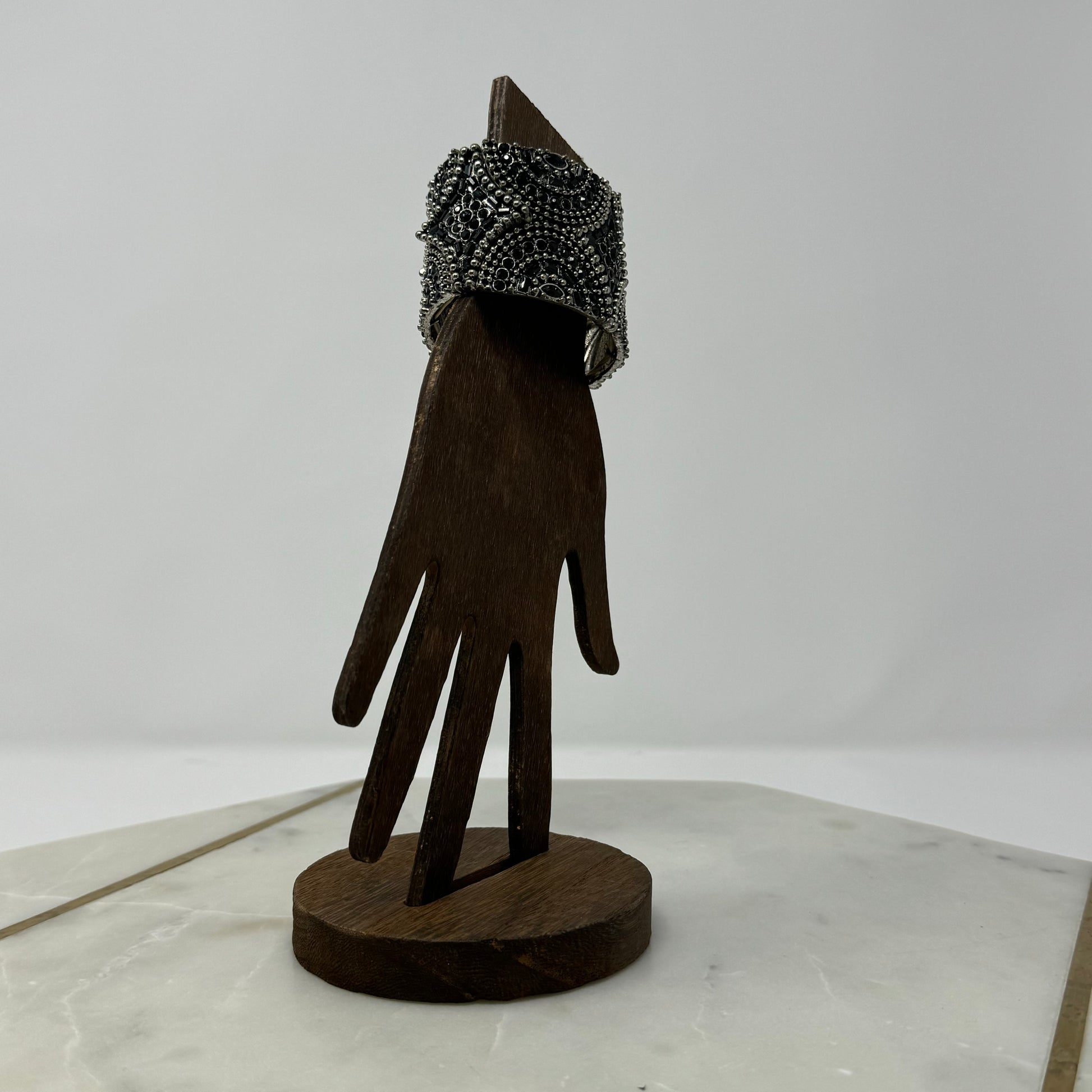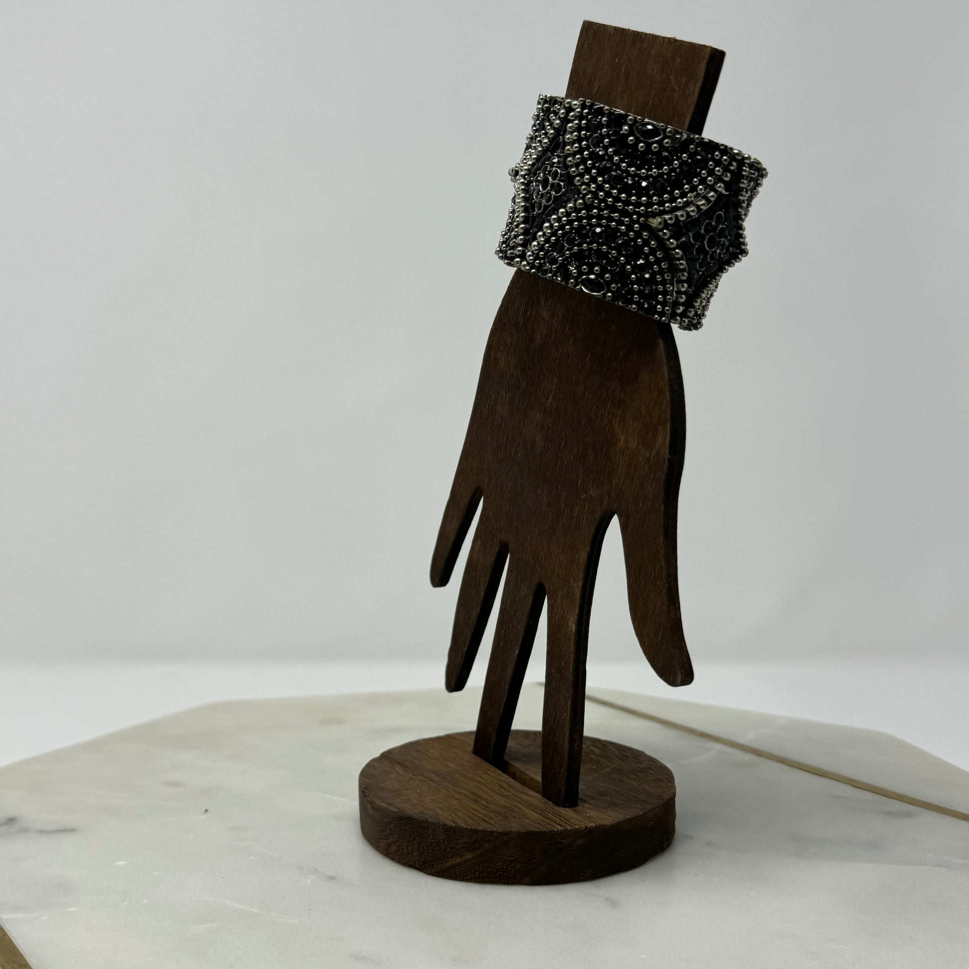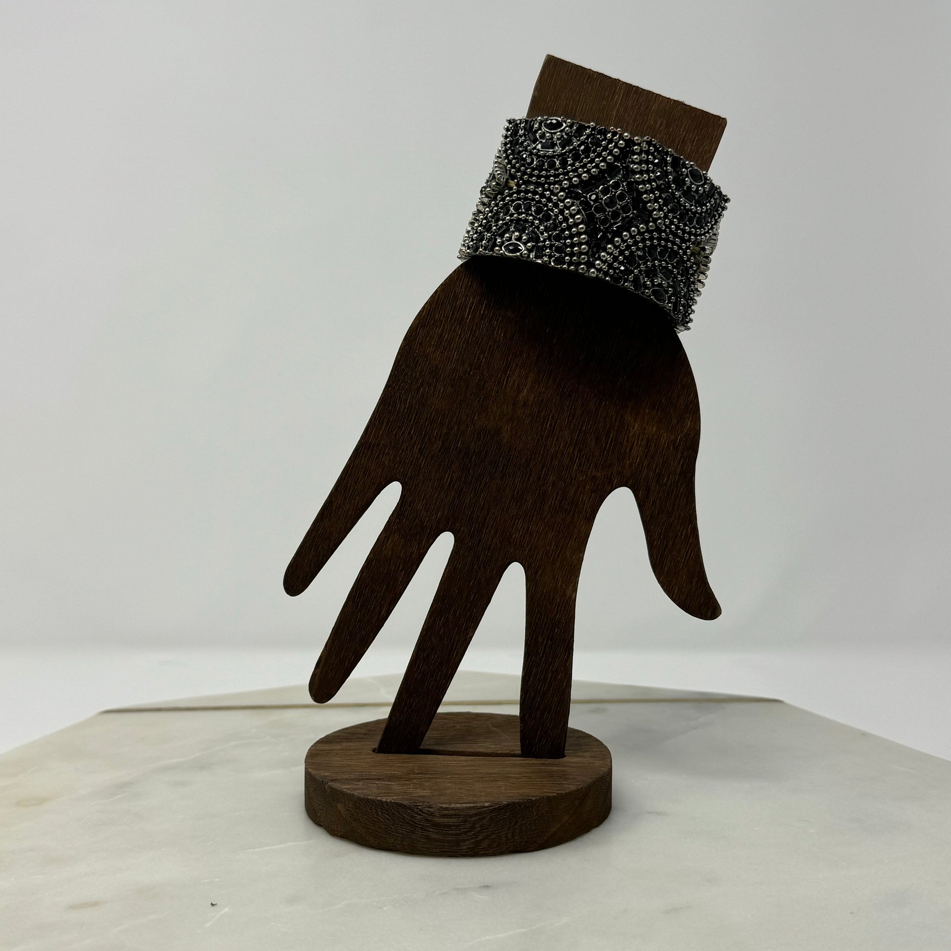 This Rhinestone Design Expanding Metal Bangle Bracelet features a sparkling rhinestone design that adds a touch of elegance to any outfit. Made with high-quality metal, this bracelet has an expanding feature for a comfortable and customizable fit. Perfect for adding a touch of glamour to your wardrobe.