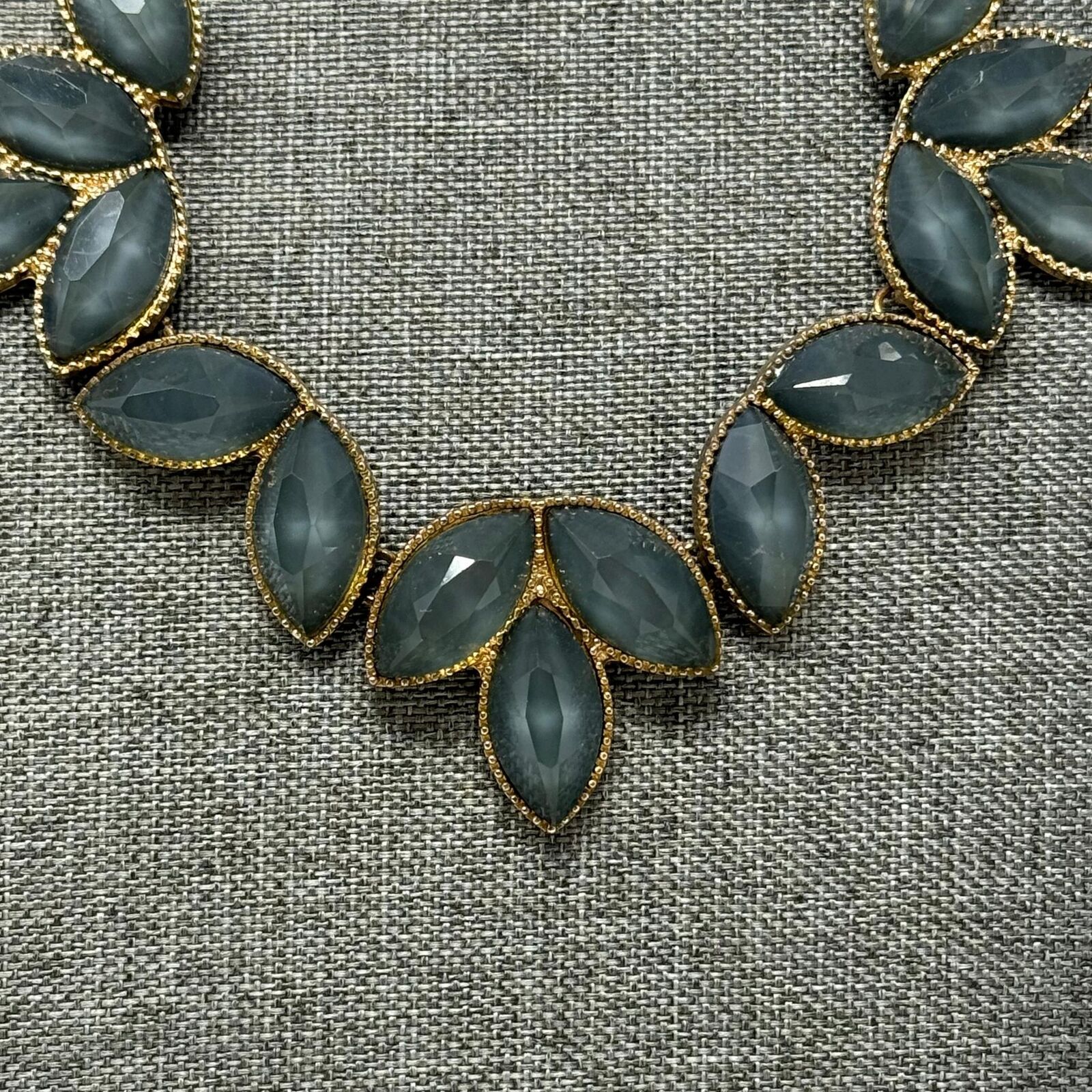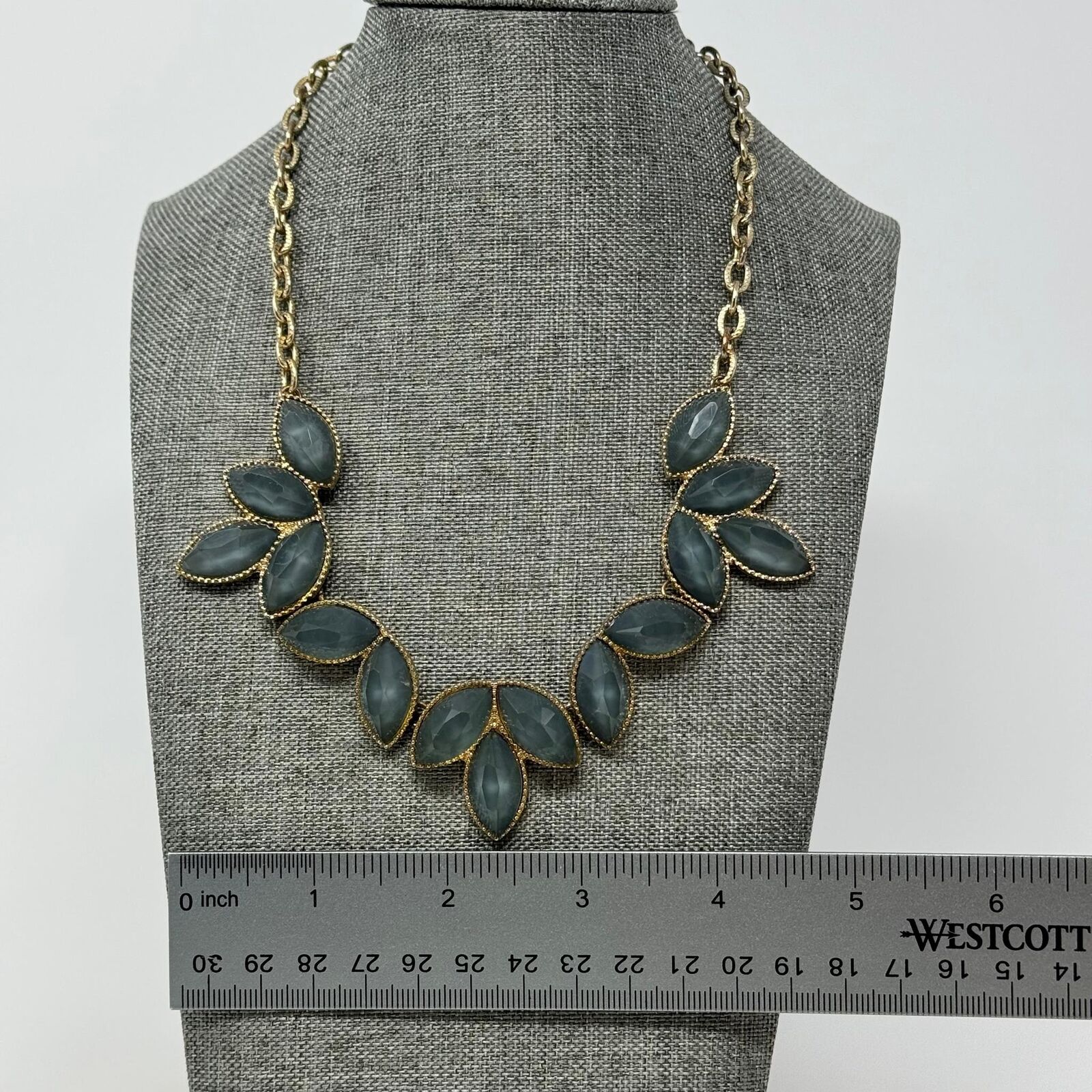 Stormy Blue & Gold Tone Floral Bib Collar Statement Necklace 16”
