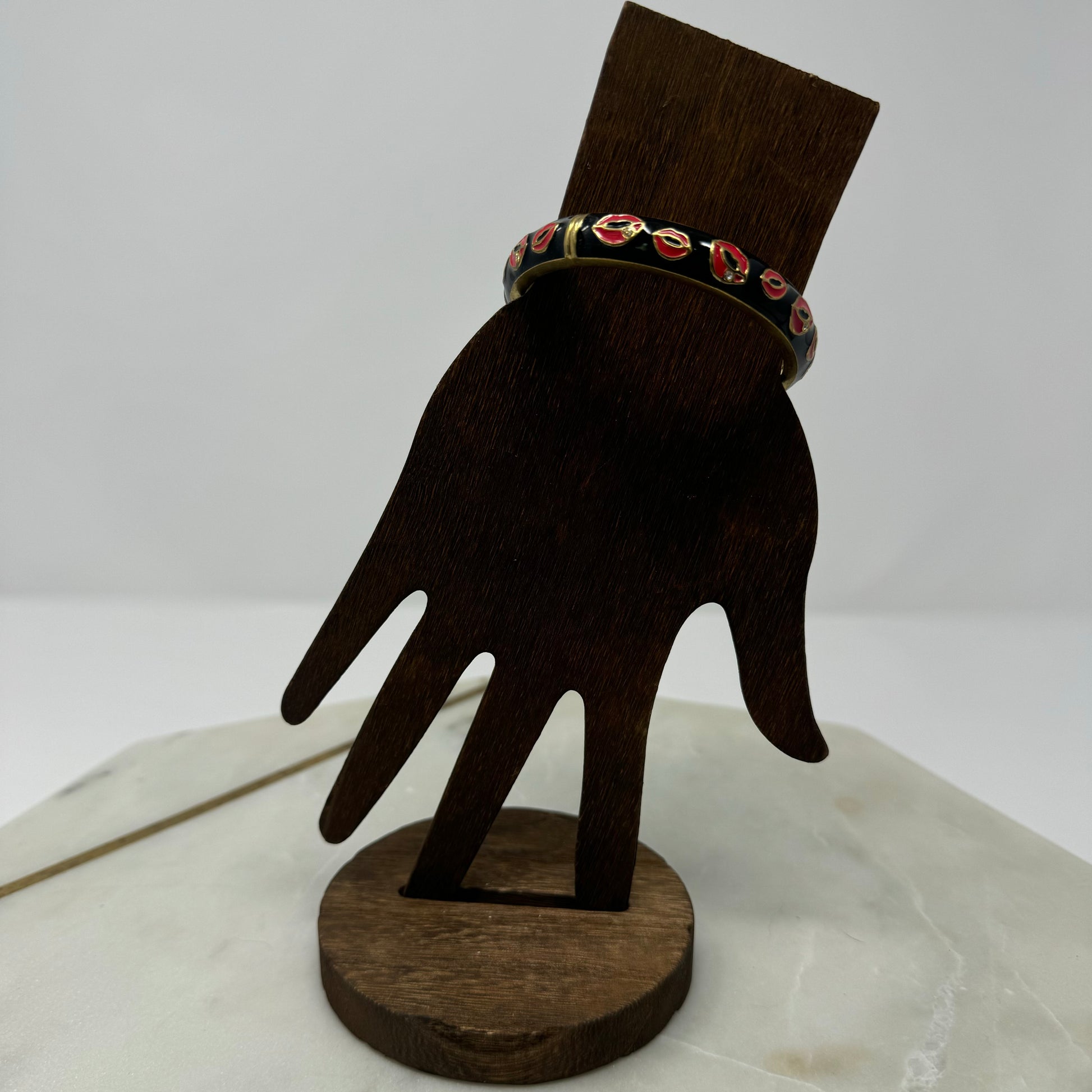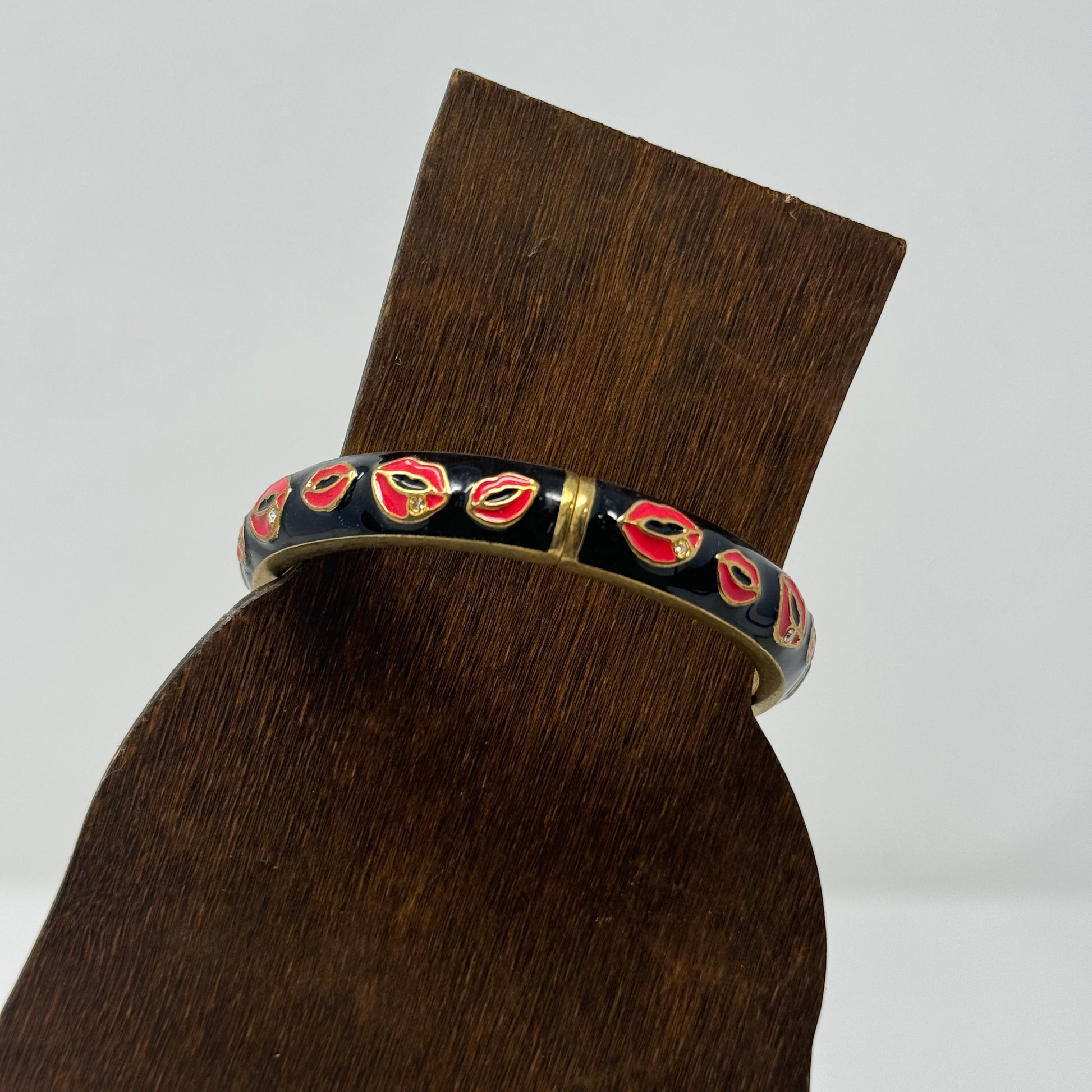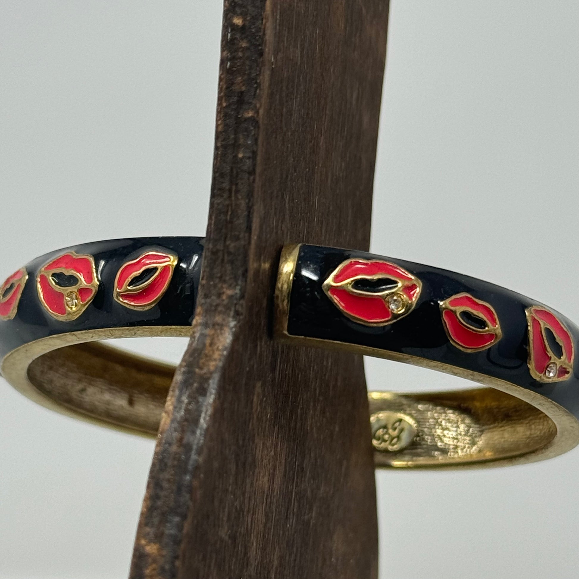 Betsy Johnson Black Enamel Bracelet with Red Lip Design Statement Jewelry