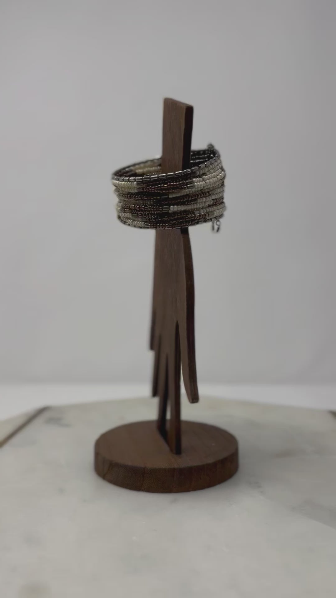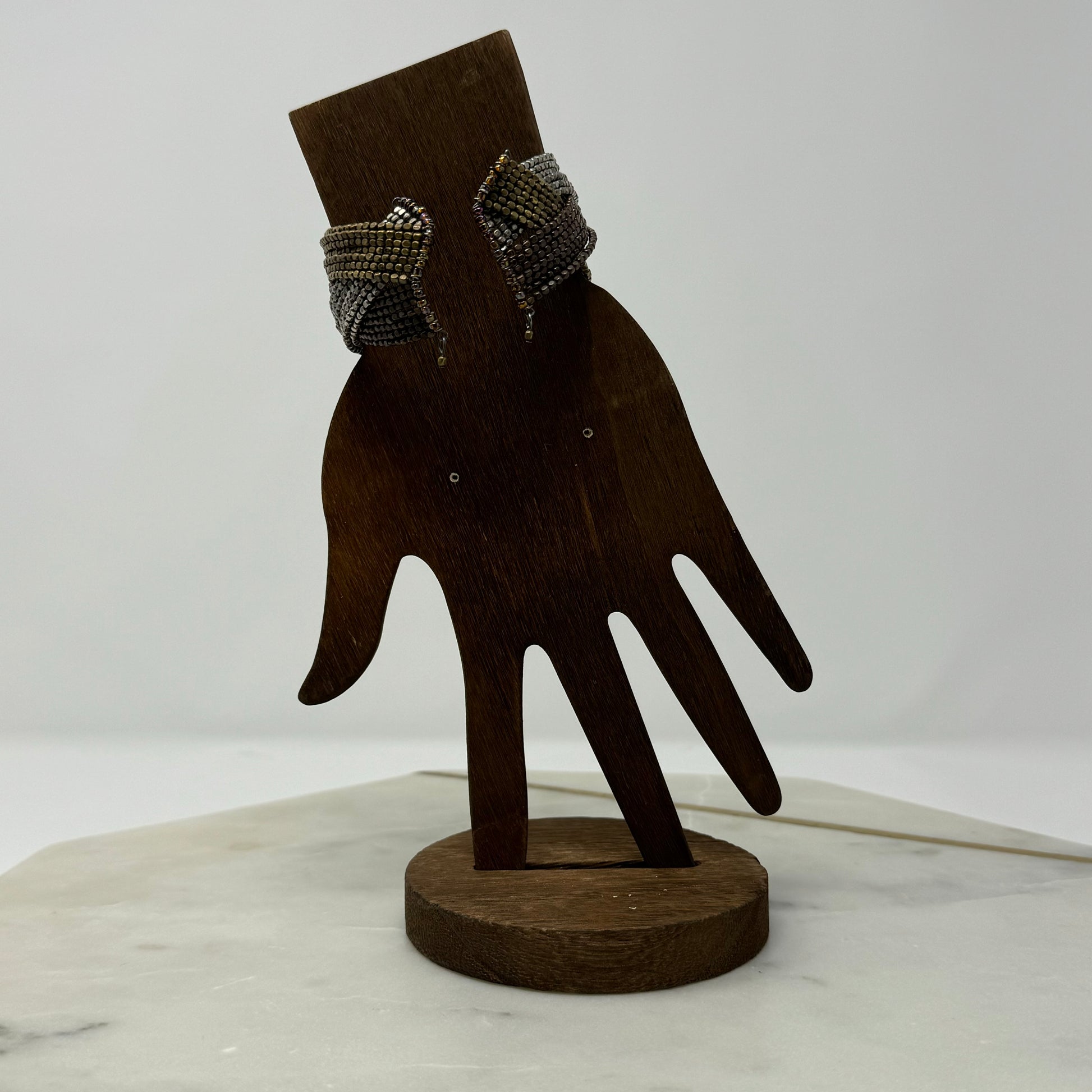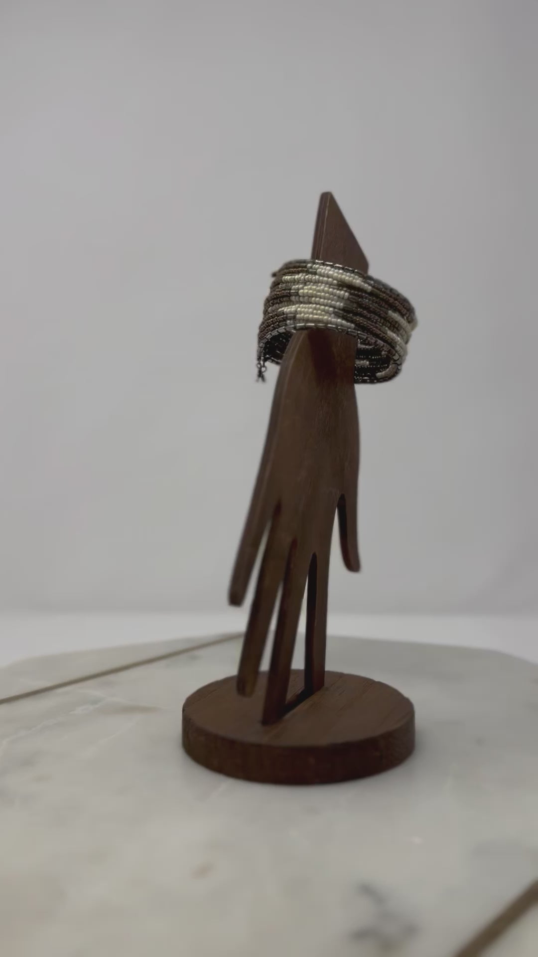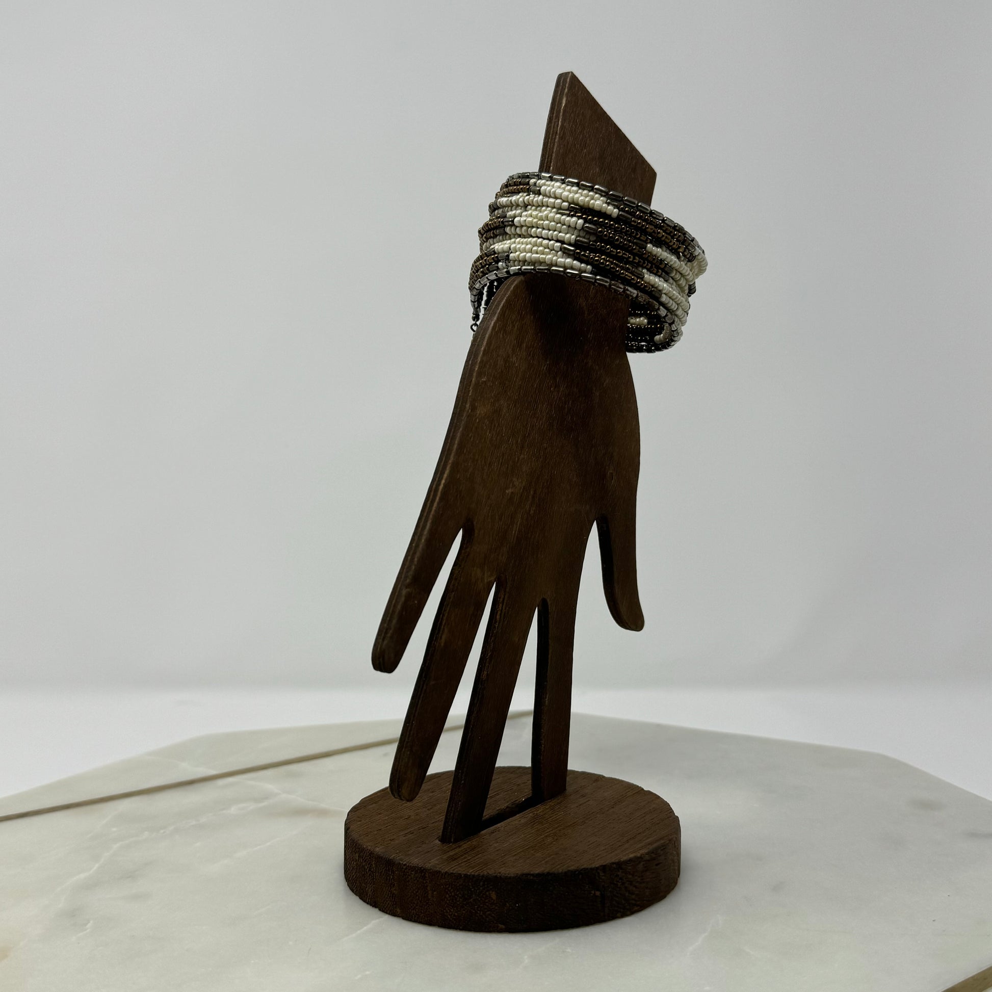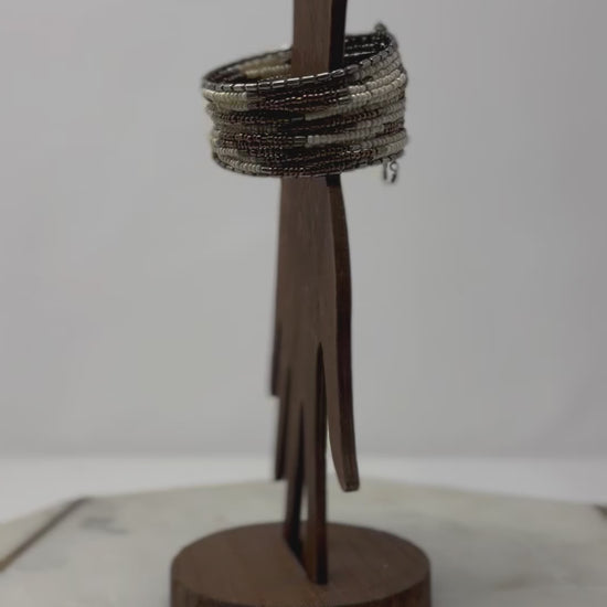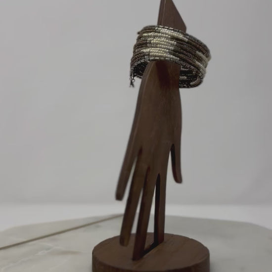 White & Brown Beaded Cuff Bracelet